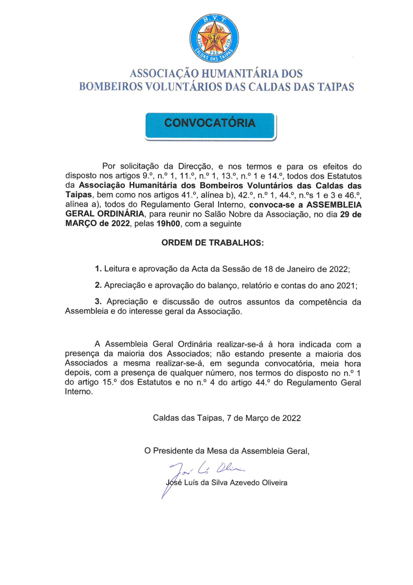 ASSEMBLEIA GERAL ORDINÁRIA – CONVOCATÓRIA